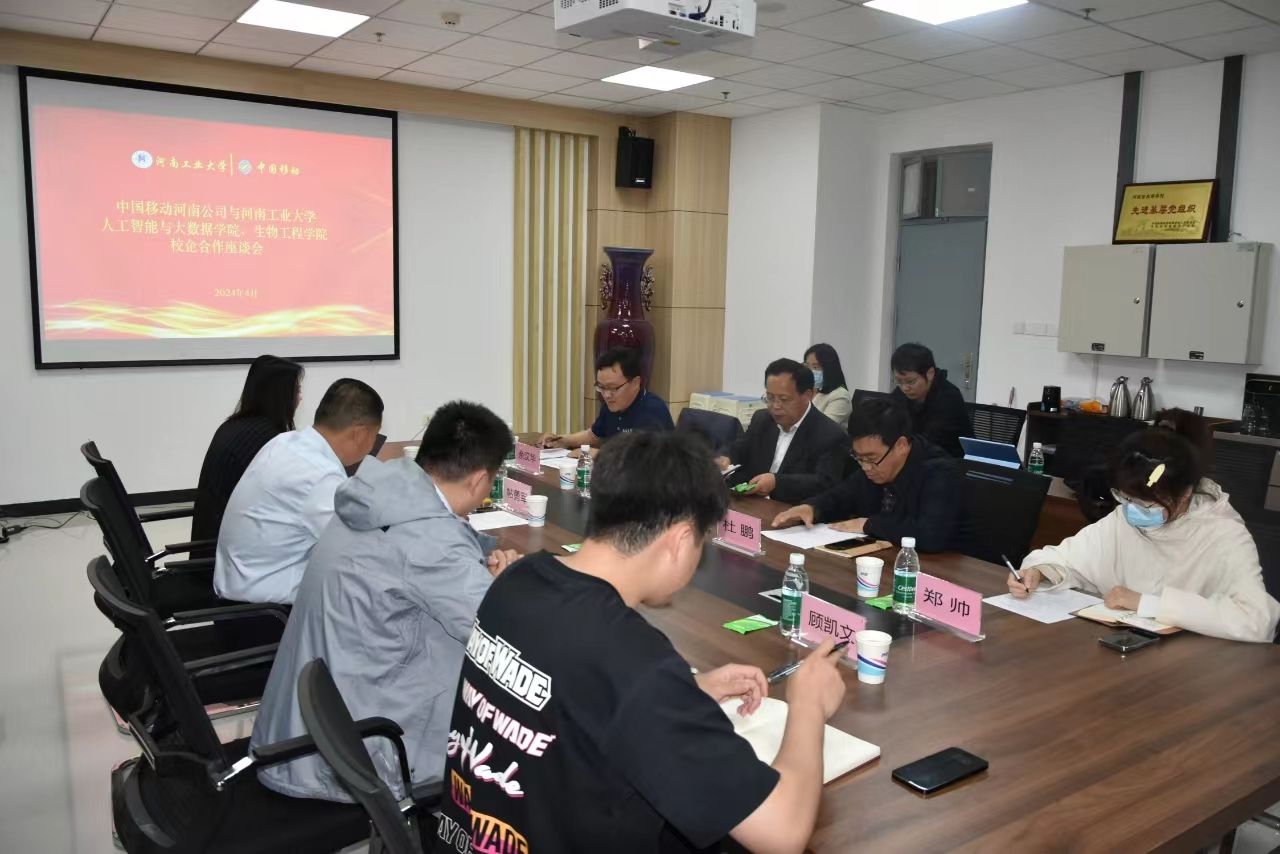 在惟德楼1318会议室举行校企合作座谈会议。会议围绕中国移动与河南工业大学就人工智能与大数据和生物信息等业务的合作发展方向展开研讨。人工智能与大数据捷报体育比分