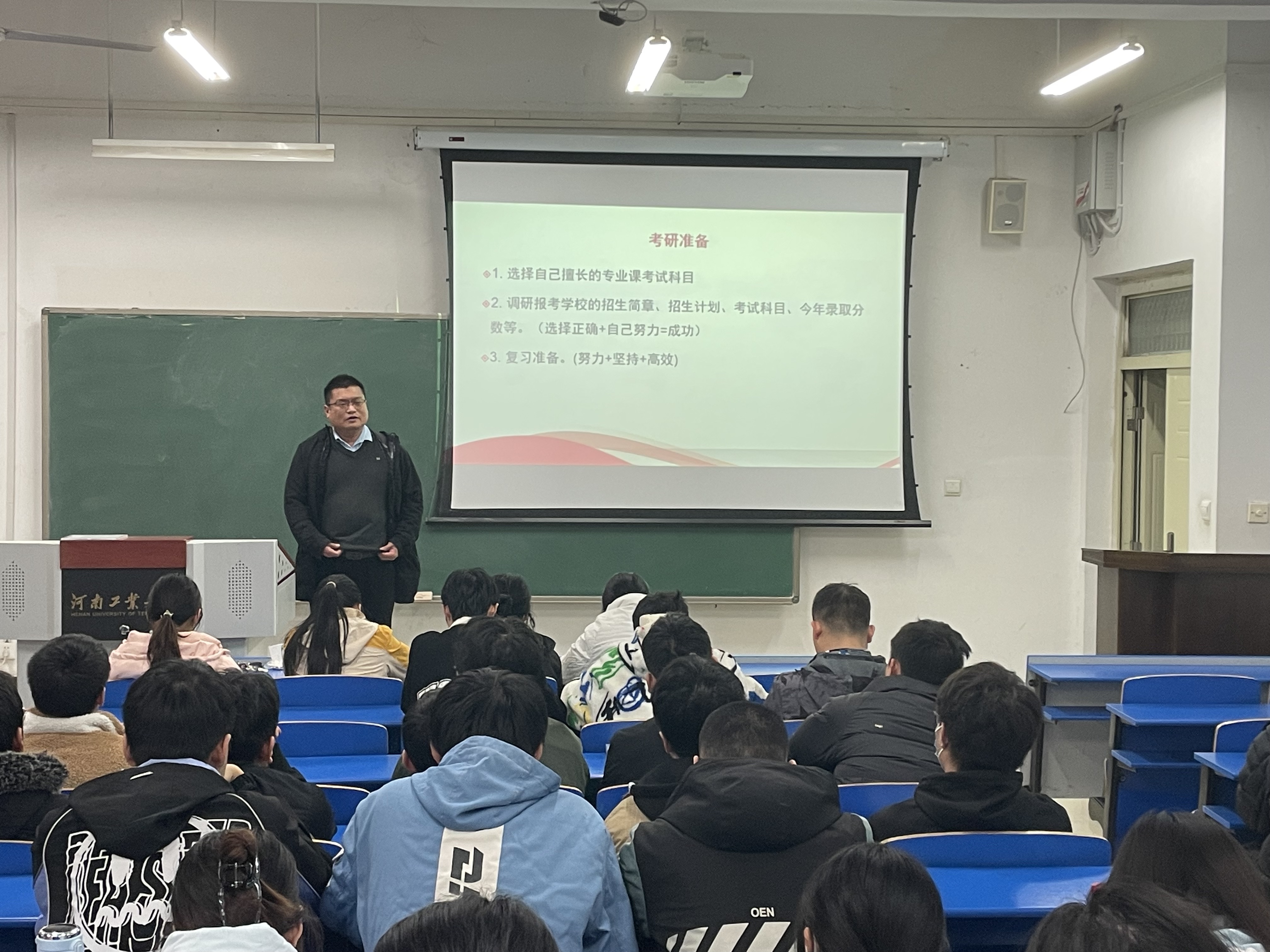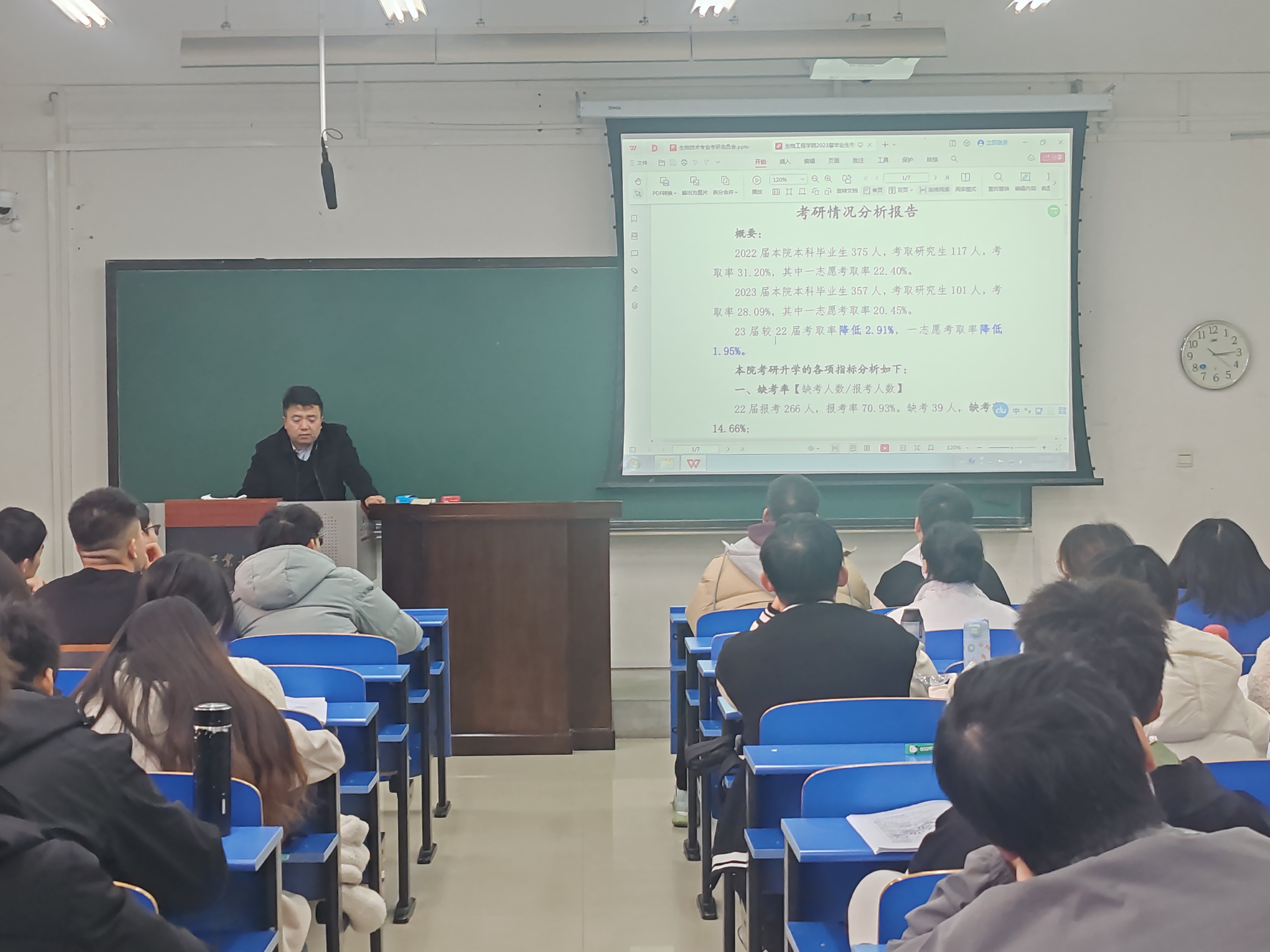、华中农业大学、浙江大学等重点院校的专业特色、师资力量、学科排名、考研录取率等情况。随后结合我校动物科学专业特色及优秀成功案例,详细解析了本专业学生可选择的考研方向及对应的专业特点、研究范围及未来就业去向等。同时,强调了备考的重要时间节点,引导同学们充分做好备考计划和进度安排。最后鼓励同学们要坚定考研信念,并结合自身情况,合理选择报考院校,潜心踏实学习,全力以赴考取自己理想的院校!