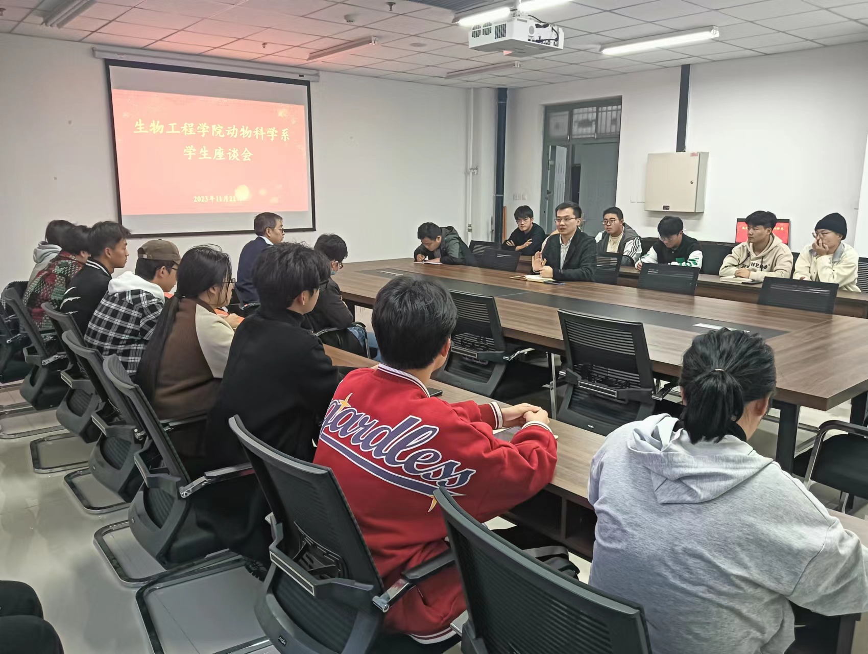 统一部署和要求,11月21日,动物科学系在惟德楼1314会议室组织召开了本学期课堂教学学生座谈会。会议由动物科学系主任乔汉桢主持,教师代表管军军、杨刚和程康参加了此次座谈会。