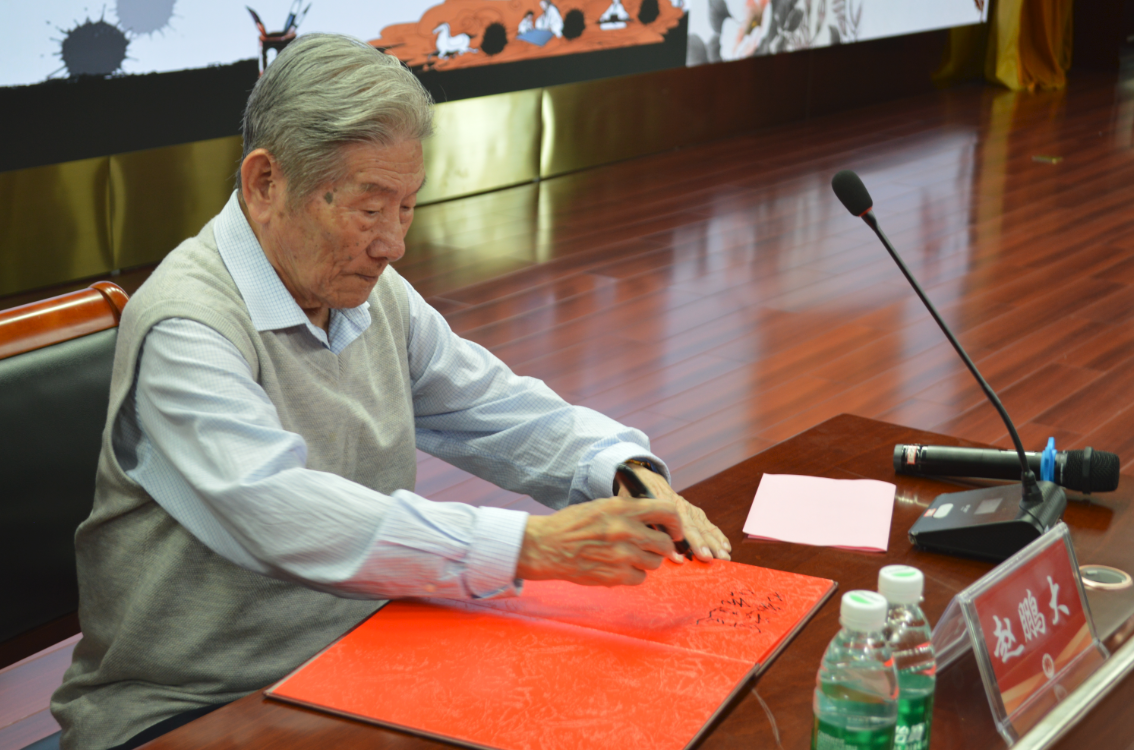 会议最后,杨伟超邀请赵院士在“工大讲坛”嘉宾签名簿上为我校青年题词并与师生代表合影留念。