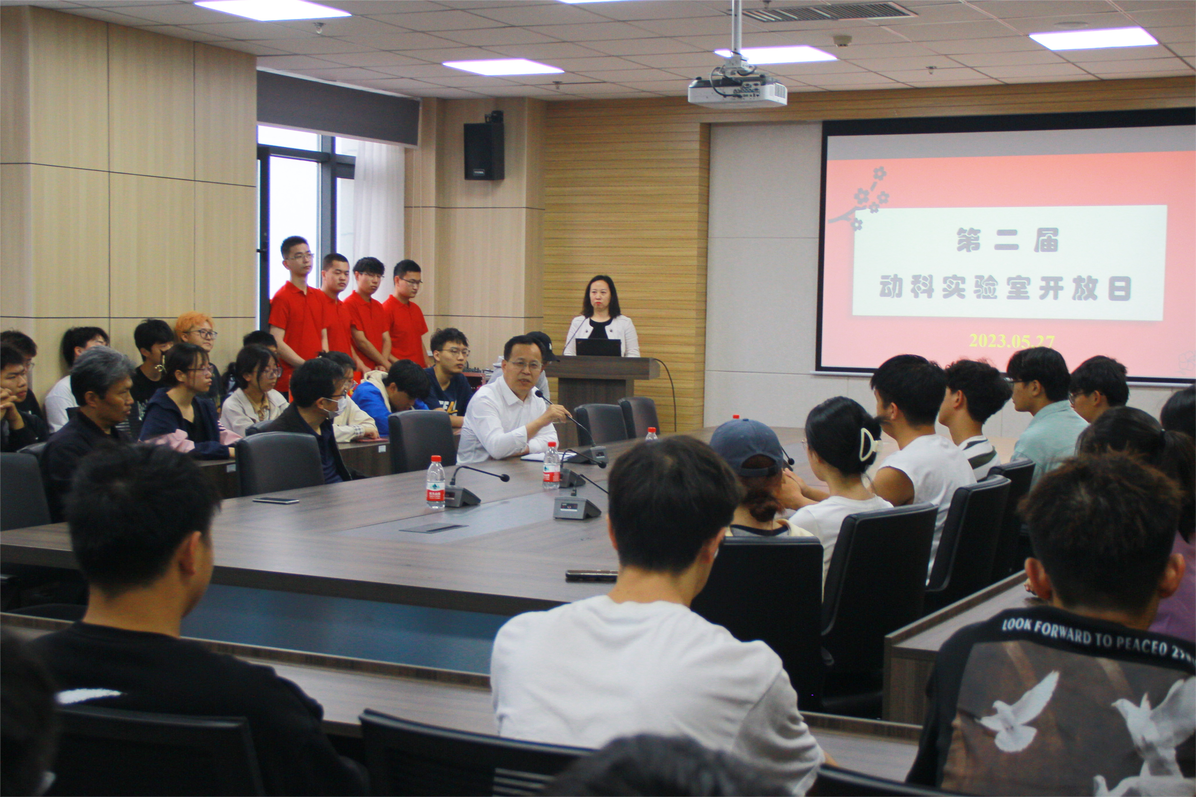 热烈欢迎同学参与此次实验室开放日活动。他指出,实验室开放日活动是老师们付出巨大努力为同学们准备的一次丰富多彩的科研体验之旅,是同学们了解专业、爱上专业的坚实桥梁,是同学们近距离触摸科研、触碰梦想的难得机会。他希望,同学们通过深入参与实验室开放日活动获得以下收获:一是寻找自己的兴趣和爱好,找到自己未来学习的方向,依托专业,找到人生的发展目标;二是通过实验室开放日活动,加强同学们跟老师们的沟通与交流,找到未来的学习伙伴和学习榜样;三是通过实验室开放日活动,发现自己未来的事业伙伴,创业的伙伴,合作的伙伴,共同努力,创造自己的美好未来。随后,动物科学系主任王金荣教授说明了此次活动举办的背景意义,并对活动流程进行了介绍。