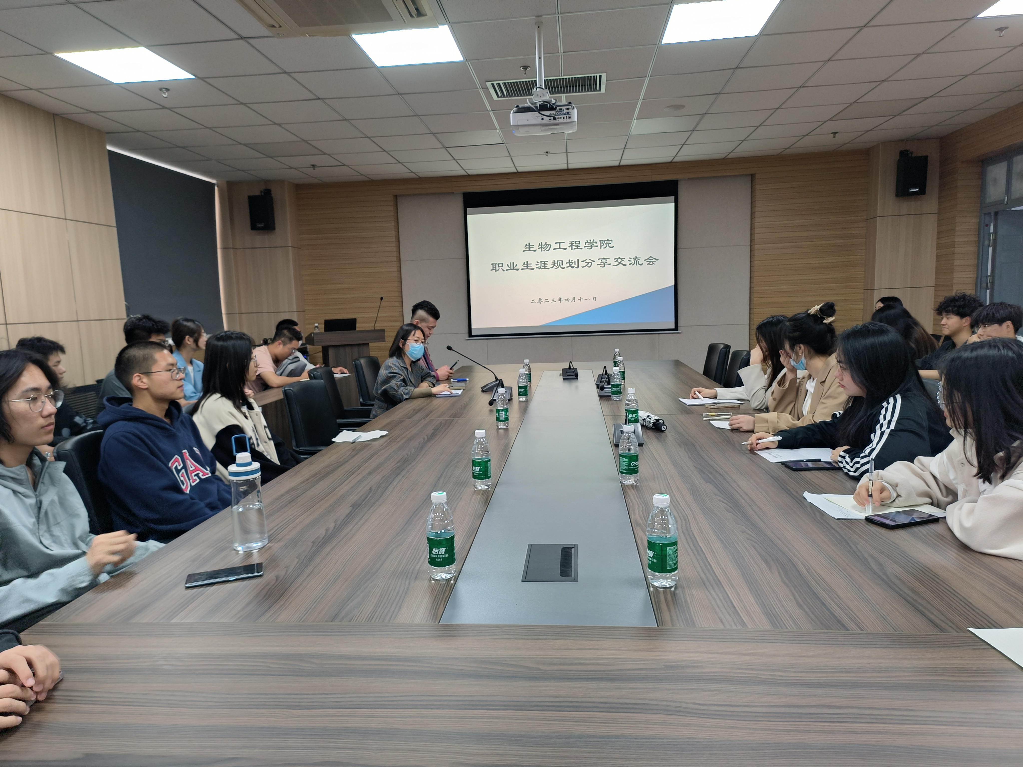 在基础实验实训中心1313会议室开展职业生涯规划分享交流会。禾丰食品股份有限公司区域政府公共关系负责人徐培珊与同学们做交流,21级和22级饲料工程专业学生参加了交流会。会议由院学工办主任岳媛媛主持。