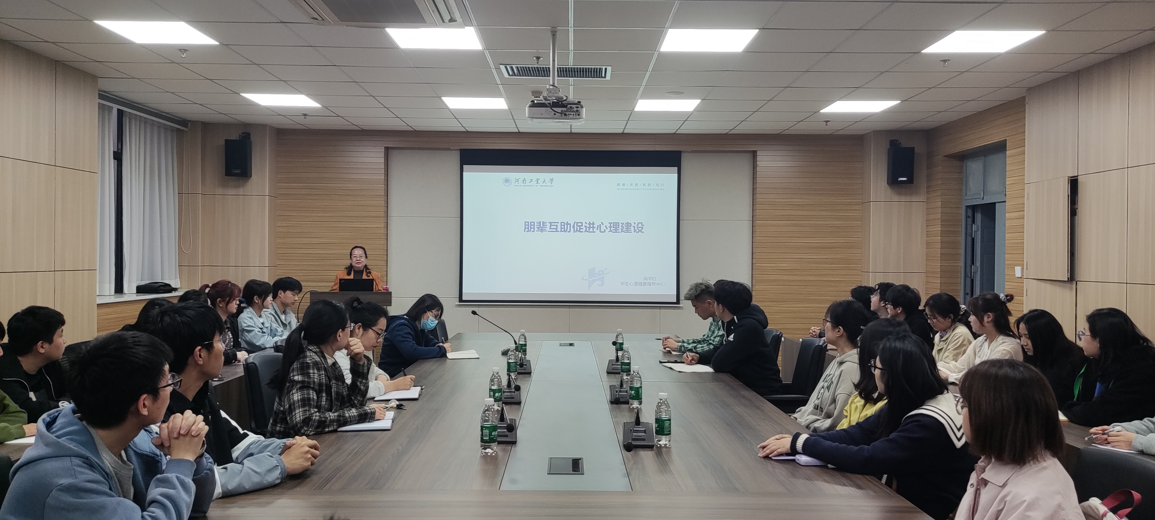 全体辅导员、各年级学生干部、心理委员等参加了培训。讲座由院学工办主任岳媛媛主持。