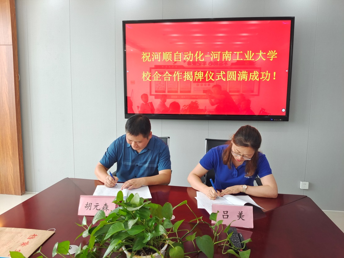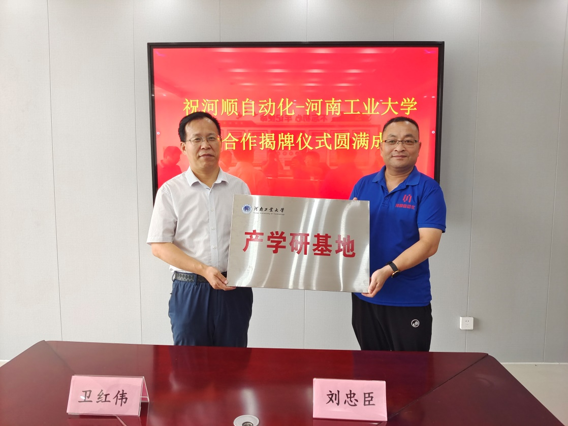 副院长刘来亭等一行到河南河顺自动化设备股份有限公司交流考察,并签订产学研合作协议。河南河顺自动化设备股份有限公司董事长刘忠臣、总经理吕美、总工程师史建波、技术部经理宋炎明出席签约仪式。