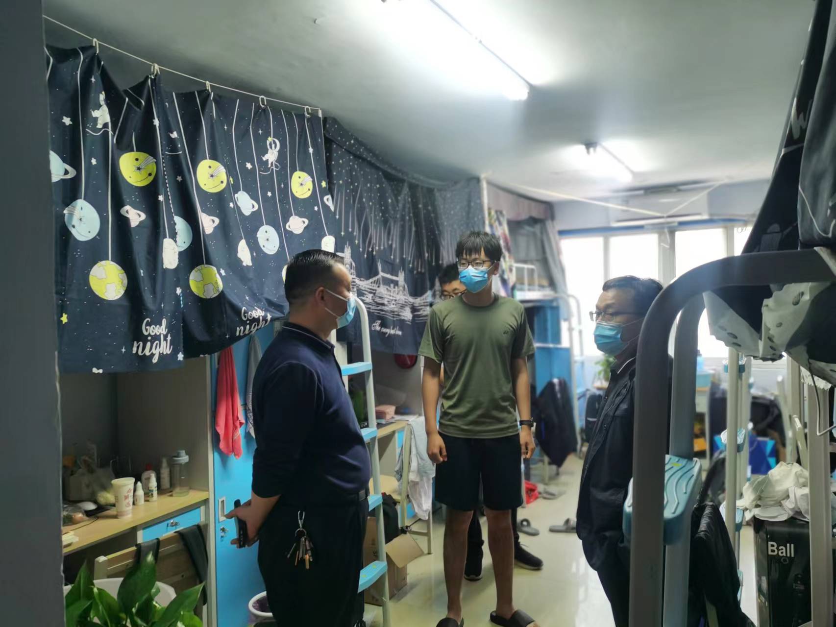 党委书记李继周、副书记余汉华、团委负责人丁凯强等领导老师深入南公寓看望学生,了解学生的思想、生活学习、疫情防控和安全稳定工作。