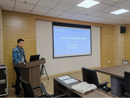 会议邀请校督导委员、院督导组成员、校长教学质量奖和校教学大赛一等奖获得者、省级一流课程负责人黄亮老师做了《关于教学大奖赛准备的心得交流》培训报告,黄老师结合自己的课程教学,从学校历届教学大奖赛教学理念的演变、课程执行大纲、教学设计的改革与创新等方面,深入浅出加以介绍并分享经验,同时介绍了信息化工具对说课与现场教学的影响与变革,强调了课程思政与专业知识、教学设计的融会贯通。参会老师纷纷就课堂教学过程、教学方案设计、智慧教学、课程思政、参赛体会等,进行了热情的深度交流和研讨。