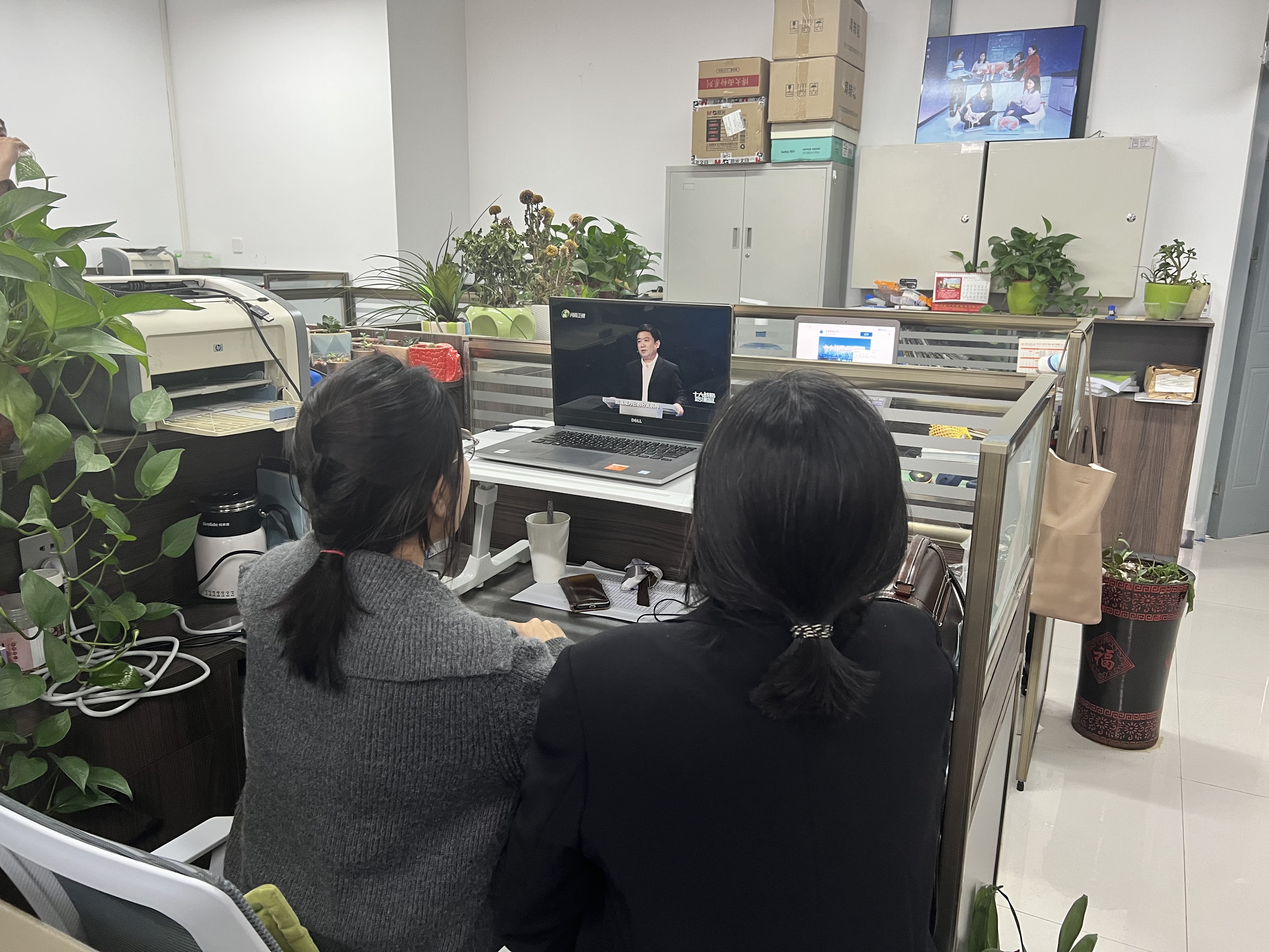 组织班子成员、系室负责人、辅导员在1313会议室集中观看,其他教工党员在线进行观看学习。