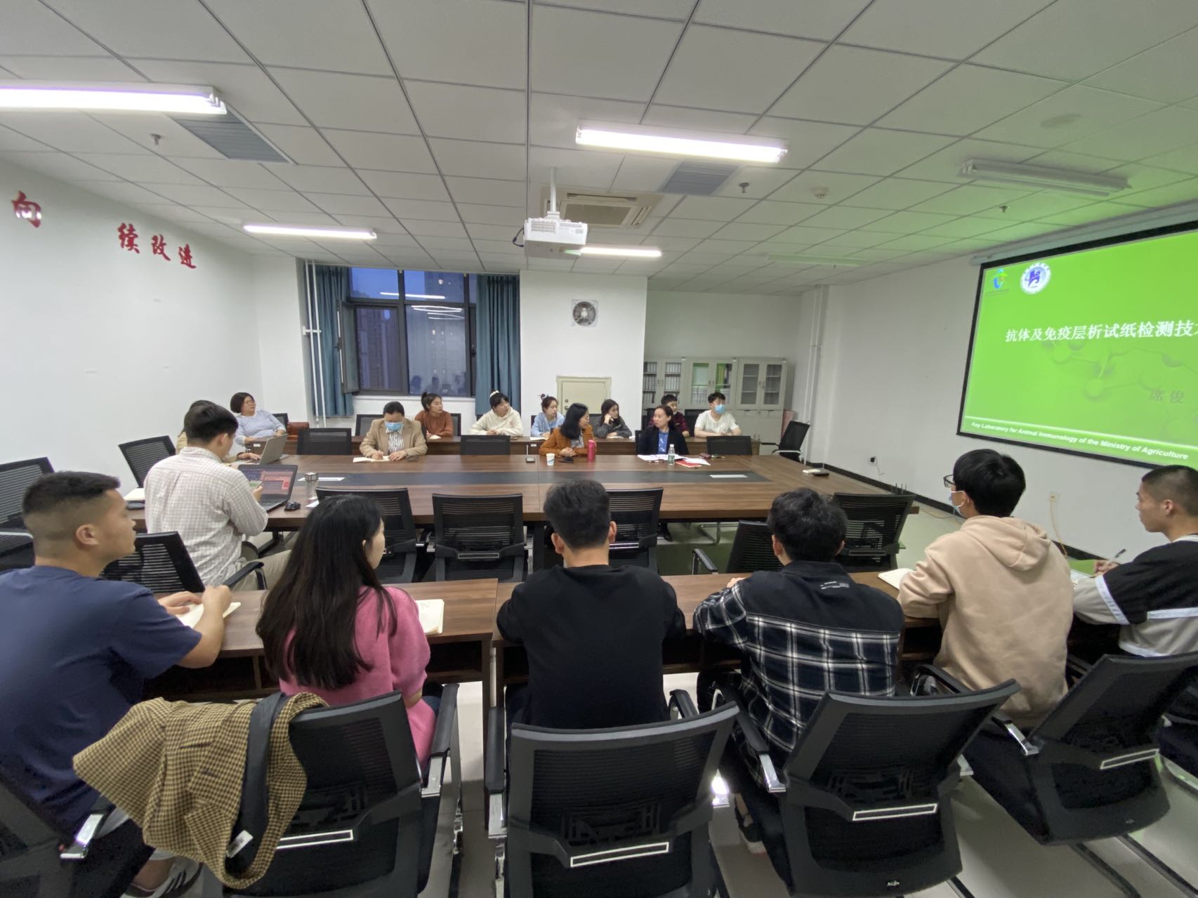 席俊教授在基础实训楼1314会议室做了题为“抗体及免疫层析试纸检测技术”的专题讲座。饲料质量与安全团队教师、研究生和动物科学系部分本科生参与交流会。会议由团队负责人王金荣教授主持。