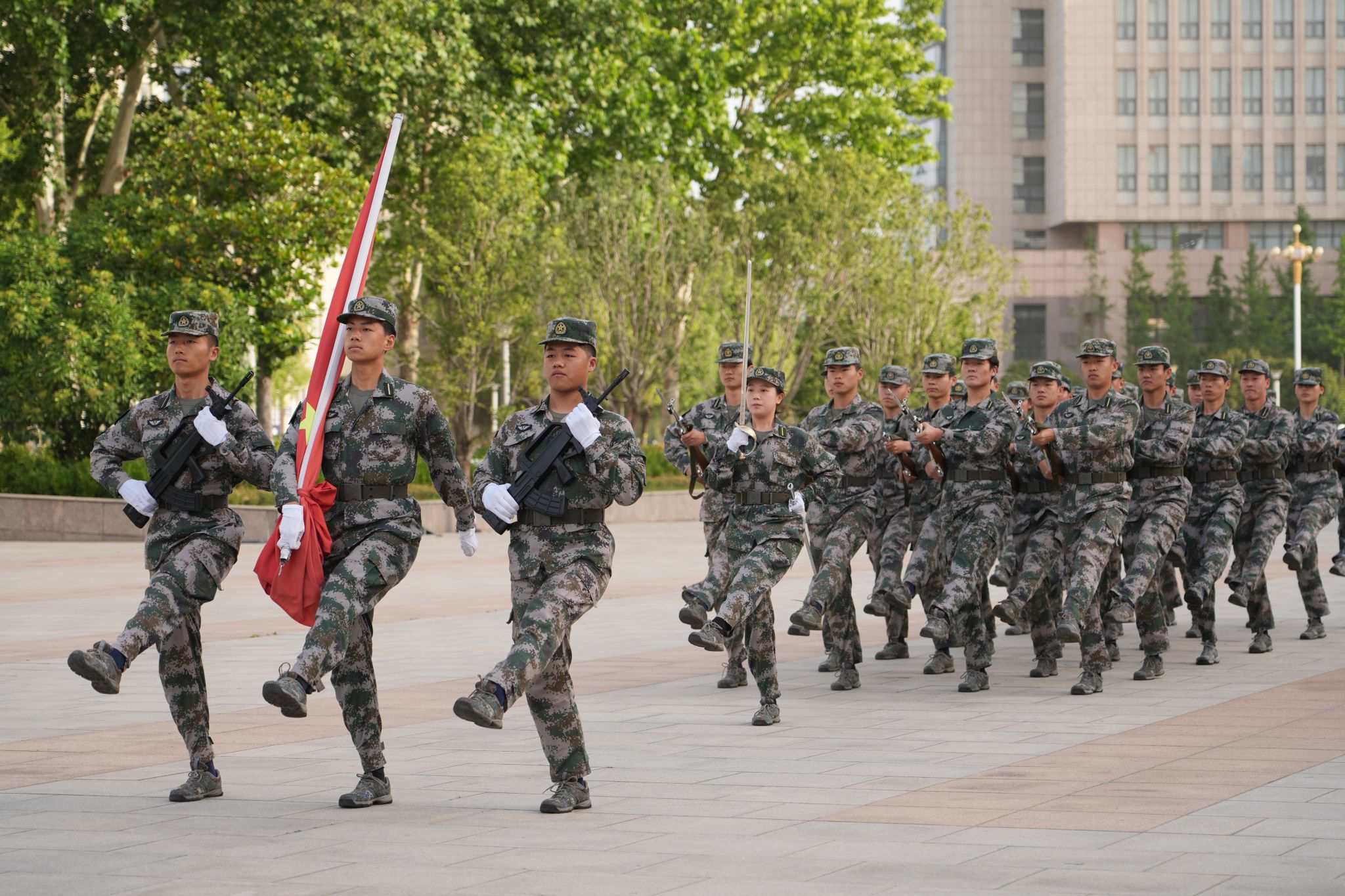 上午7时整,升旗仪式正式拉开帷幕,国旗护卫队迈着坚定而矫健的步伐,护送着鲜艳的五星红旗缓缓进场。国歌奏响,五星红旗冉冉向着朝阳升起,在场所有师生庄严肃立,向国旗行注目礼。