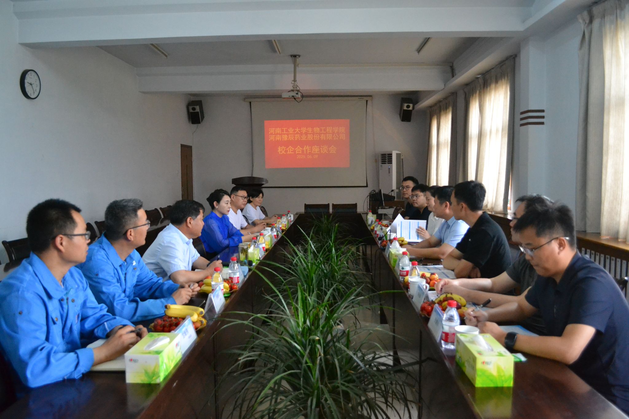 院长胡元森、副院长崔柳青、制药工程系主任赵英源以及专业青年骨干教师代表前往河南豫辰药业股份有限公司商谈建立教学实习基地事宜。河南豫辰药业股份有限公司董事长路明、总经理傅收、副总经理梁莉及公司技术和中层管理人员参与会谈。