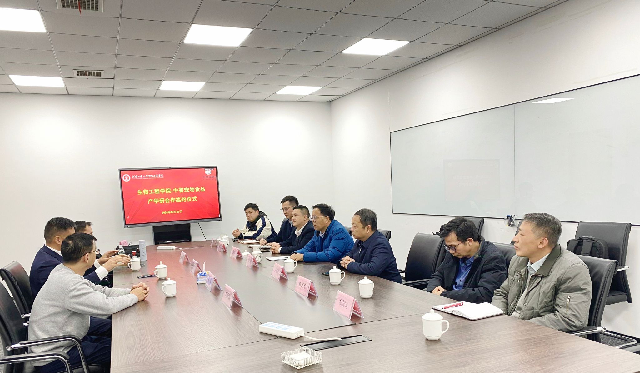 党委书记卫红伟、动物科学系主任乔汉桢、“饲料工程科技创新团队”带头人管军军一行赴中誉宠物食品(漯河)有限公司举行产学研创新实践基地签约授牌仪式。中誉宠食董事长安中平、鲜宠事业部总负责人汤化钢等公司代表,海瑞正检测董事长兰尊海、总经理兰剑以及海涯文化传媒董事长董海军等企业代表共同出席了签约与授牌仪式。仪式由汤化钢主持。