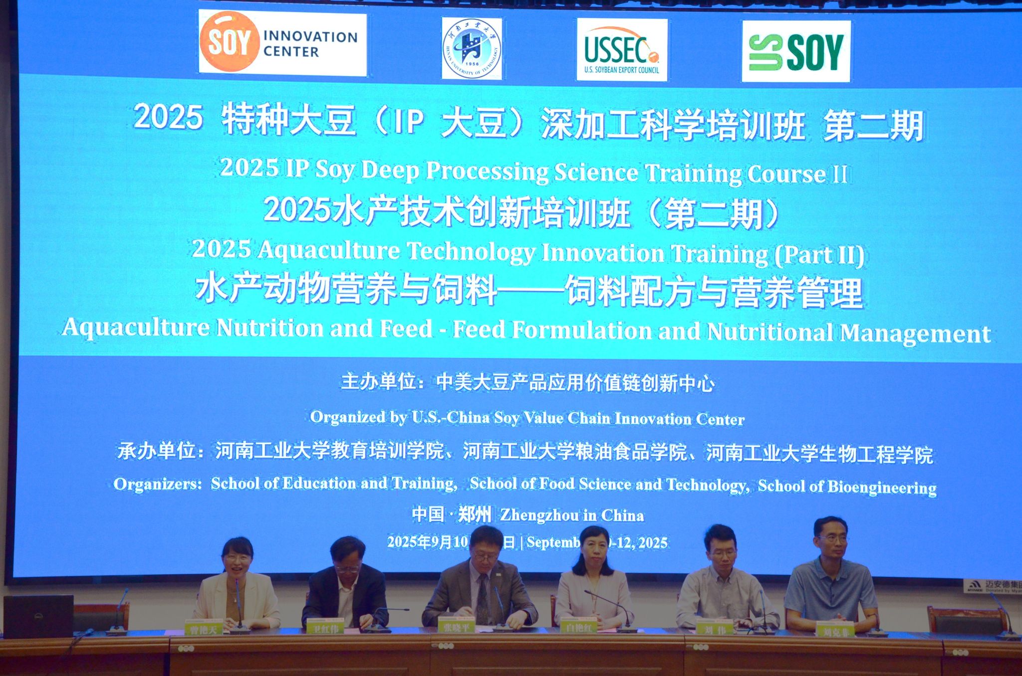 为推动水产动物营养与饲料领域技术创新,加强行业产学研合作,助力低碳可持续水产养殖发展,由中美大豆产品应用价值链创新中心主办、河南工业大学承办的2025水产技术创新培训班(第二期)于9月10日至13日在河南工业大学顺利举办。本次培训班聚焦 “水产动物营养与饲料——饲料配方与营养管理”主题,40余位水产养殖、饲料研发领域的专家学者与企业代表齐聚一堂,以 “低碳永续、共创价值” 为核心导向,为破解水产饲料行业技术瓶颈、推动产业高质量转型注入关键动能。