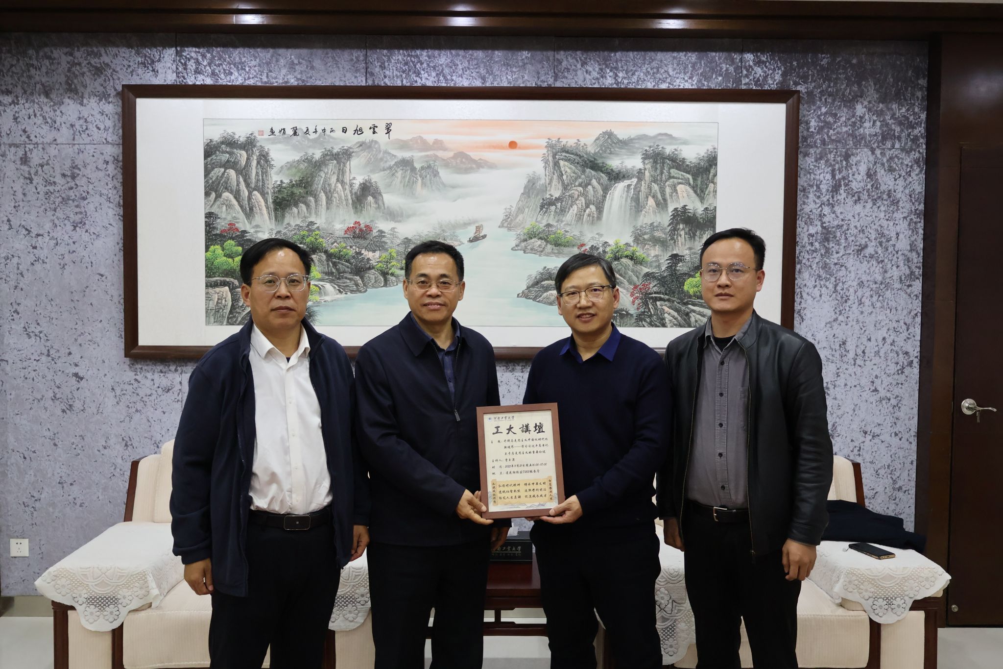 学校向曹教授赠送了“工大讲坛”纪念海报,曹教授在“工大讲坛”纪念册上寄语工大青年并签名留念。