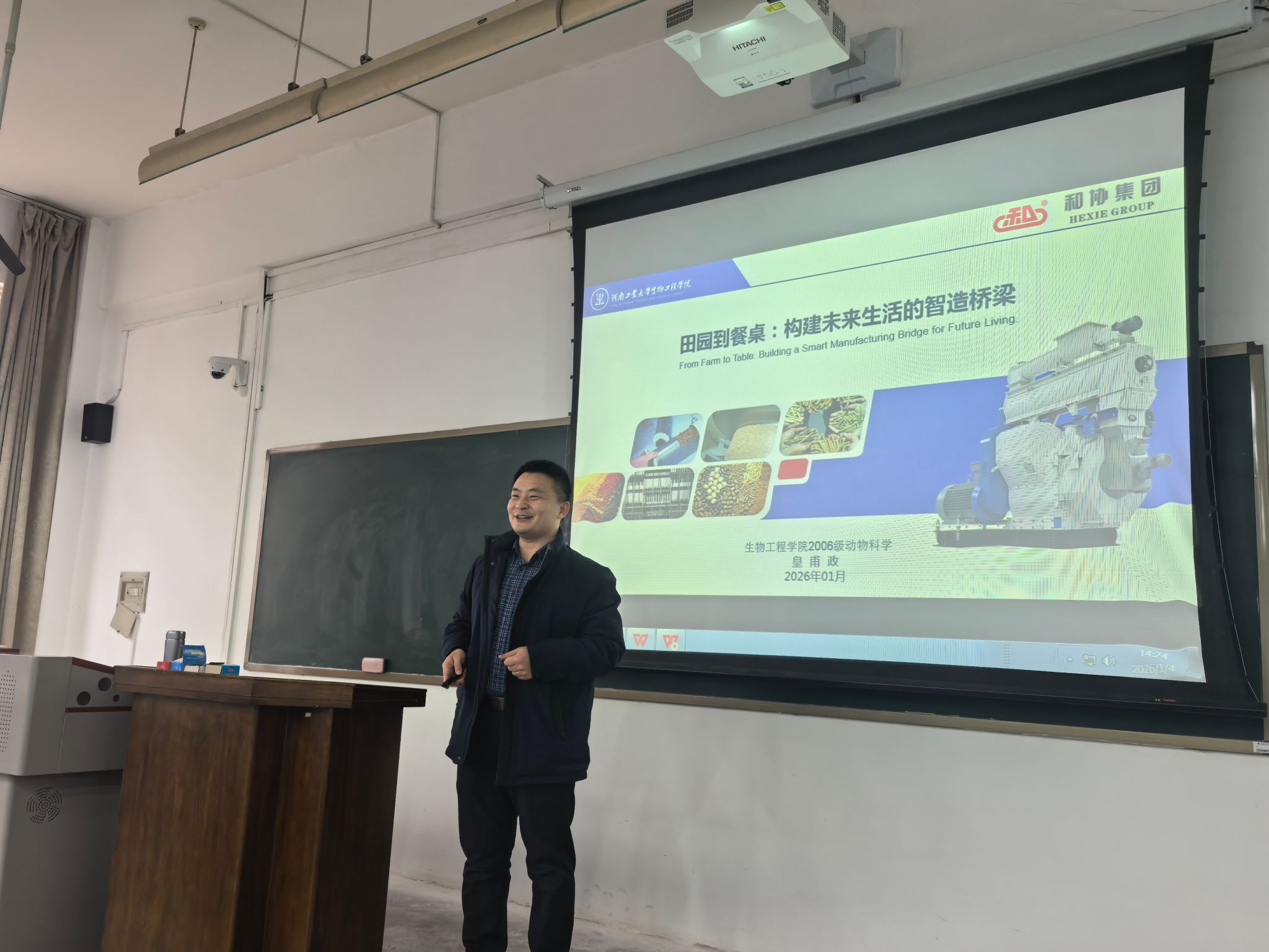 动物科学系2006届优秀校友、新乡市和协机械有限公司营销总监皇甫政重返母校,围绕饲料行业发展主题,举办专题讲座及校企座谈系列活动。本次活动旨在深化产教融合机制,推动校企协同育人,共探人才培养与行业创新联动路径。