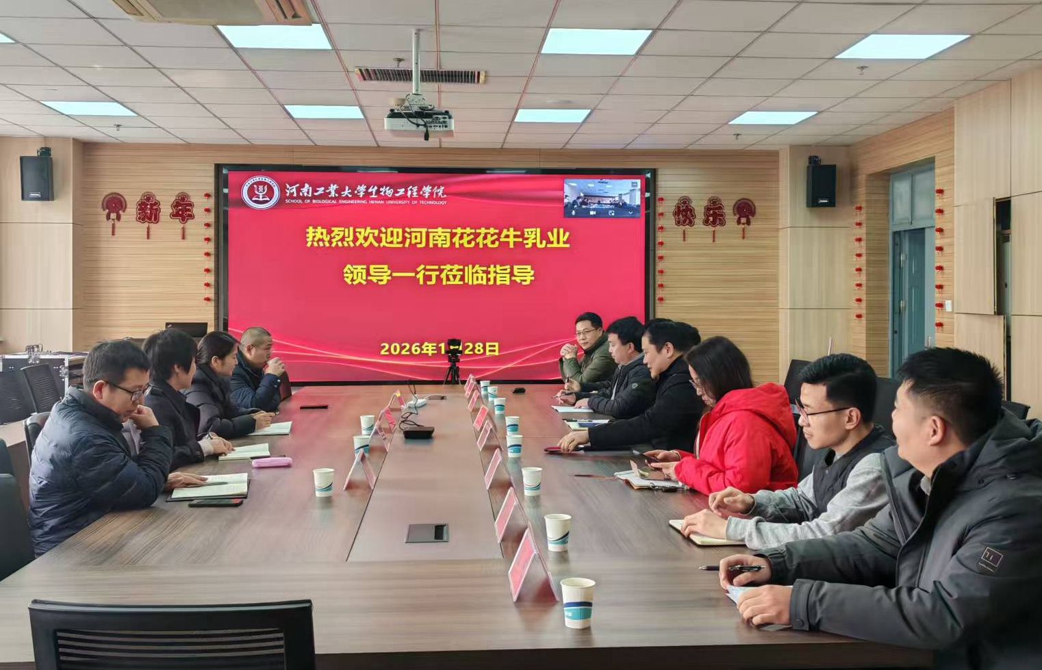 2026年1月28日,河南花花牛乳业集团股份有限公司总经理助理兼人力资源管理部总监李倩影、质量管理总监赵广英、研发总监姜波、乳品事业部运营部马永升一行就提升牛奶风味、打造优质特色产品来我院寻求交流合作。我院党委书记卫红伟、院长胡元森、副院长梁赢、“畜牧学”学科带头人王金荣教授及捷报体育比分