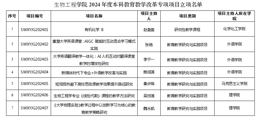 关于开展2024年度教育教学改革专项项目的通知》要求,经教师申报和捷报体育比分