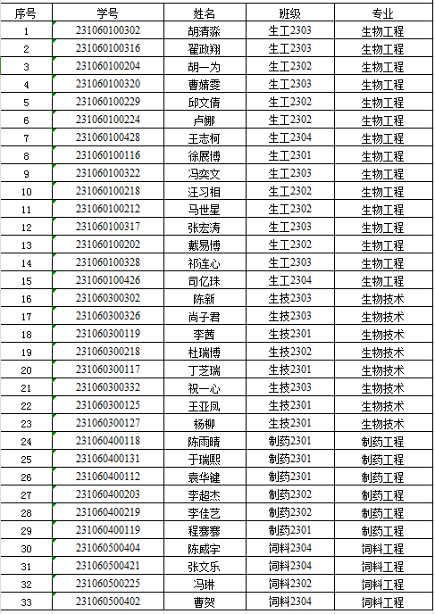 注:名单顺序为按专业排序。
