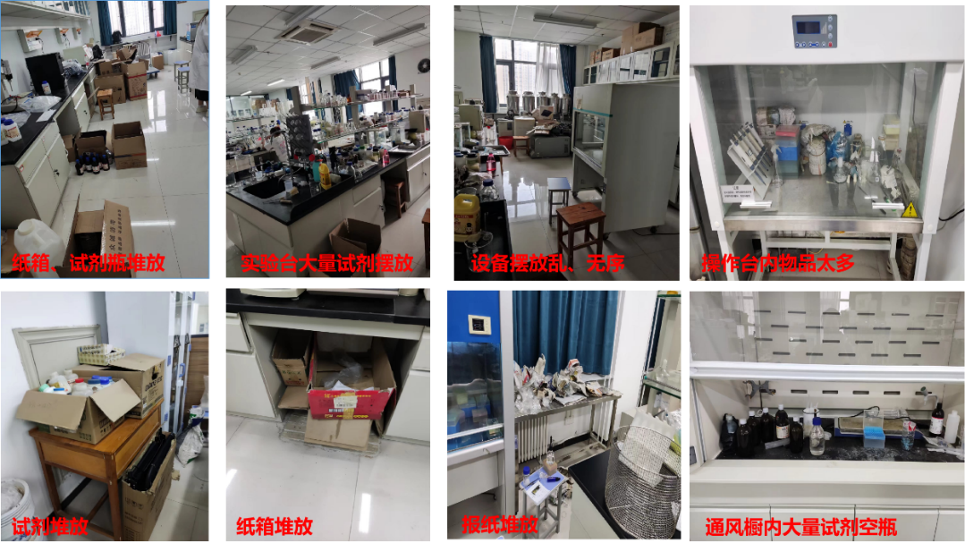 安全员周燕霞、苏明慧老师对全院科研实验室进行了安全大排查。检查的重点放在了实验室卫生整洁情况、设备规范操作、管制类危化品使用、用电安全、火灾隐患等方面。这次检查发现各实验室整体情况有了明显的改善,尤其是卫生整洁方面,。但部分实验室仍存在废旧桌凳、纸箱等杂物、废旧设备堆放过多、明火电炉屡禁不止以及试剂存放不规范等现象。