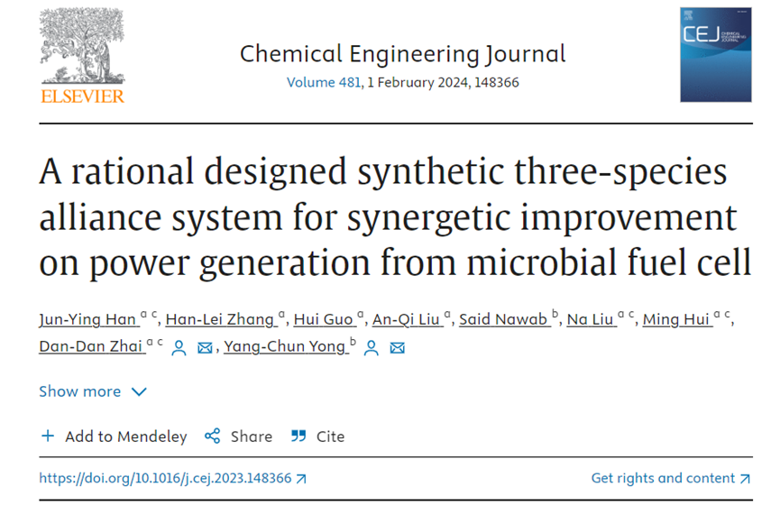 翟丹丹副教授课题组在国际著名学术期刊《Chemical Engineering Journal》(影响因子IF=15.1,中科院1区,化学-工程领域TOP期刊)在线发表了题为“A rational designed synthetic three-species alliance system for synergetic improvement on power generation from microbial fuel cell ”的研究论文,我校为该论文的第一署名单位,捷报体育比分