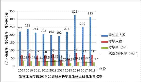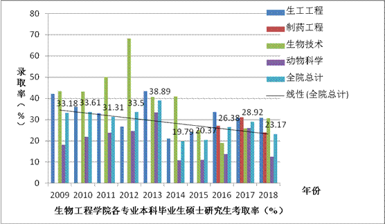 2009~2018届本科毕业生硕士研究生考取率