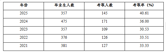 近五届本科毕业生硕士研究生考取率