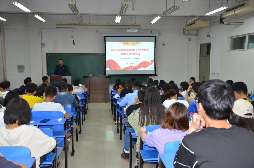 宣讲中,李继周强调,中国特色社会主义进入新时代,作为积极要求进步的青年大学生,要认真学习领会新时代中国特色社会主义思想的深刻内涵、历史意义和党的十九大做出的战略部署,积极把握时代脉搏,自觉以新时代中国特色社会主义思想为指导,进一步坚定理想信念,树立远大理想,切实增强“四个意识”,坚定“四个自信”,做到“两个坚决维护”, 始终与党中央保持高度一致,时刻用新时代共产党员标准严格要求自己,并勇担时代责任,练就过硬本领,增长能力才干,不断砥砺奋进,努力使自己成为中国特色社会主义合格建设者和可靠接班人,共同为实现中华民族伟大复兴的中国梦不懈奋斗。