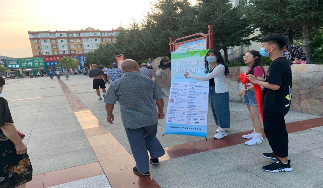 助力疫情防控社会实践小组出发前往当地广场,进行以“践行初心使命,助力疫情防控”为主题的暑期实践活动。